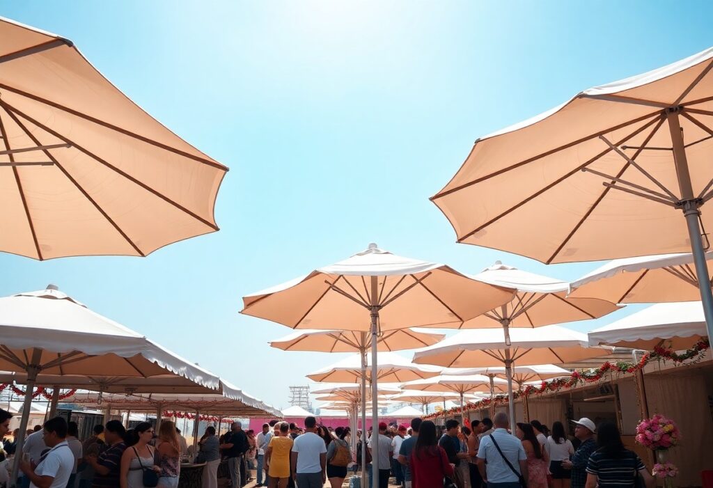 Ein grosses Gemeinschafts-Festival mit 2000 Besuchern zeigte, dass der Einsatz von 50 Sonnenschirmen bei Temperaturen um 30°C zu einer Zufriedenheitsquote von 85% führte. Dies spricht für die Notwendigkeit, bei Veranstaltungen an heissen Tagen für ausreichenden Schatten zu sorgen, um den Komfort aller Teilnehmer zu garantieren.