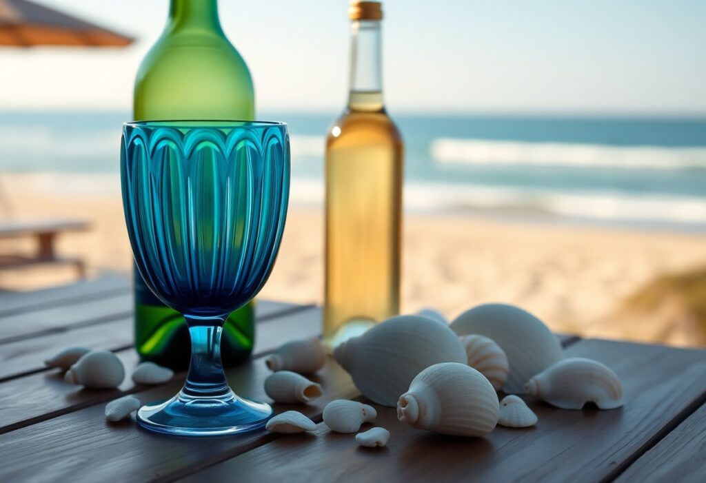 Weinglas Stripe Blau – Meeresfarben für maritime Weinverkostungen