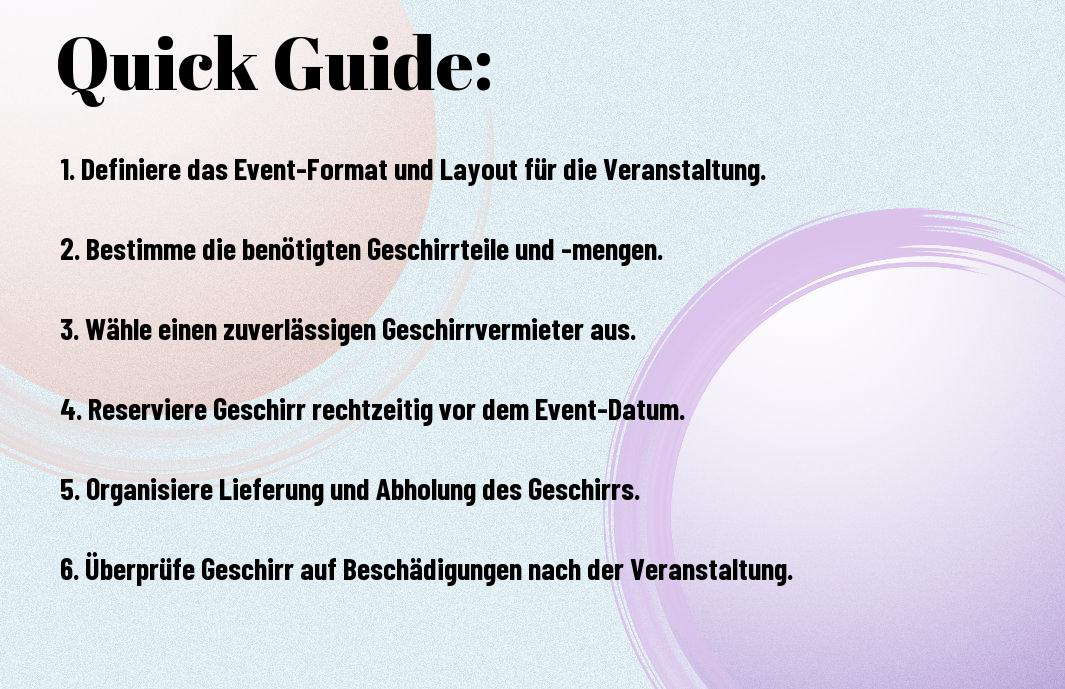 Zu Beginn Ihrer Geschirrvermietung sollten Sie gründliche Recherchen anstellen, um den Umfang und das Budget Ihrer Veranstaltung zu bestimmen. Überlegen Sie sich, welche Art von Geschirr Sie benötigen und wie viele Gäste Sie erwarten. Diese ersten Überlegungen helfen Ihnen, klare Ziele zu setzen und die nächsten Schritte effizient zu planen.