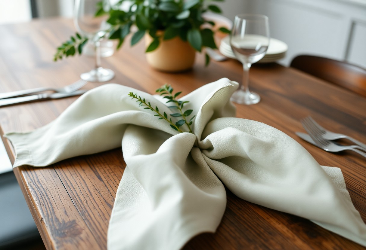 Sie suchen nach einer Möglichkeit, Ihr Event mit einer Note von Eleganz und Natürlichkeit zu bereichern? Dann sind Leinenservietten in ‚Eucalyptus‘ die perfekte Wahl für Sie. Diese schönen Servietten verleihen Ihrem Anlass eine attraktive und stilvolle Note, während der natürliche Farbton für eine harmonische Atmosphäre sorgt. Erfahren Sie, wie diese Leinenservietten Ihr Event unvergesslich machen können.