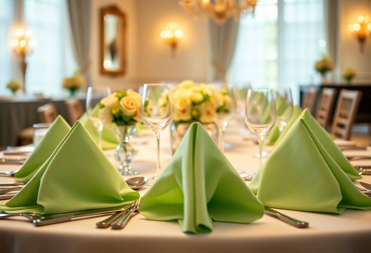 Entlang der Planung Ihres Events sollten Sie alle Aspekte berücksichtigen, um Ihre Gäste zu beeindrucken. Besonders die kleinen Details wie Servietten in Light Green können einen großen Unterschied machen.
