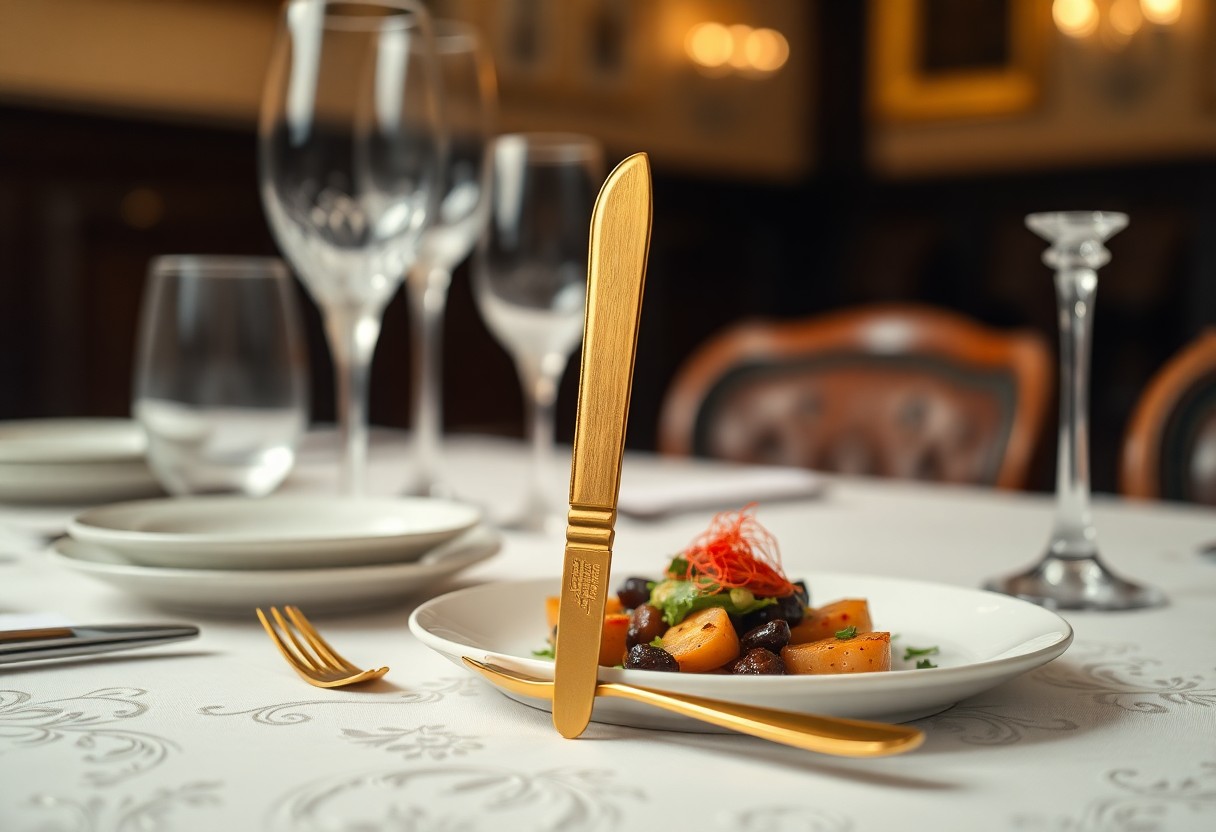 Zum Beispiel können goldene Vorspeisenmesser die Atmosphäre anheben und Ihre Gäste beeindrucken. Sie erfahren, wie Gold die Essenserfahrung auf eine neue Ebene hebt.