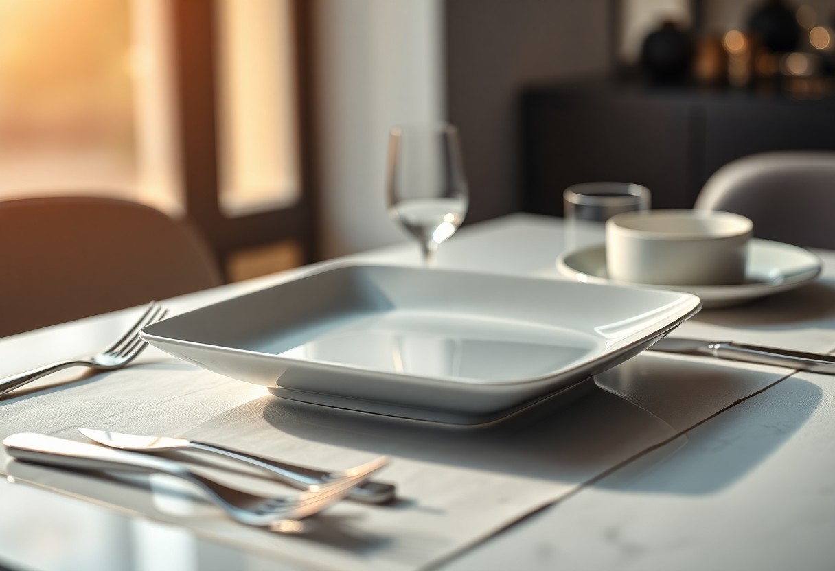 Die praktische Anordnung der quadratischen Teller fördert zudem eine angenehme Esskultur und ermöglicht es Ihren Gästen, die Speisen bequem und ohne Platzmangel zu genießen. Durch die strukturierte Form dieser Teller können Sie verschiedene kulinarische Köstlichkeiten ansprechend präsentieren und gleichzeitig das Servieren, Abräumen und Reinigen effizient gestalten. In Kombination mit dem richtigen Besteck und Zubehör tragen die quadratischen Teller maßgeblich zur Funktionalität Ihrer Tischgestaltung bei.