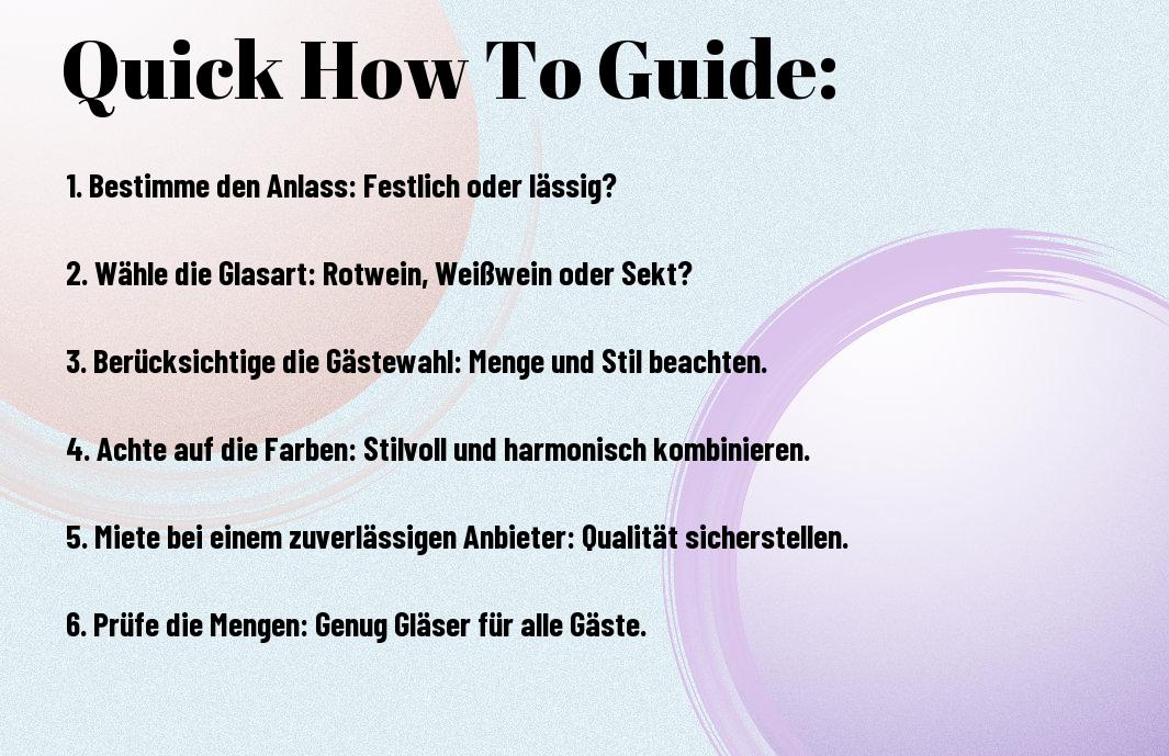 Um die perfekten Gläser für Ihre Veranstaltung auszuwählen, sollten Sie Ihre Bedürfnisse und den Anlass berücksichtigen. Überlegen Sie, ob es formell oder informell ist, und wählen Sie Gläser, die zum Stil Ihres Events passen. Achten Sie auch auf die Anzahl der Gäste und das Getränkeangebot. Es ist wichtig, dass Sie rechtzeitig mieten und verschiedene Anbieter vergleichen, um die besten Optionen zu finden. Mit diesen Tipps stellen Sie sicher, dass Ihre Glaswahl sowohl funktional als auch ästhetisch ansprechend ist, um ein unvergessliches Erlebnis zu schaffen.