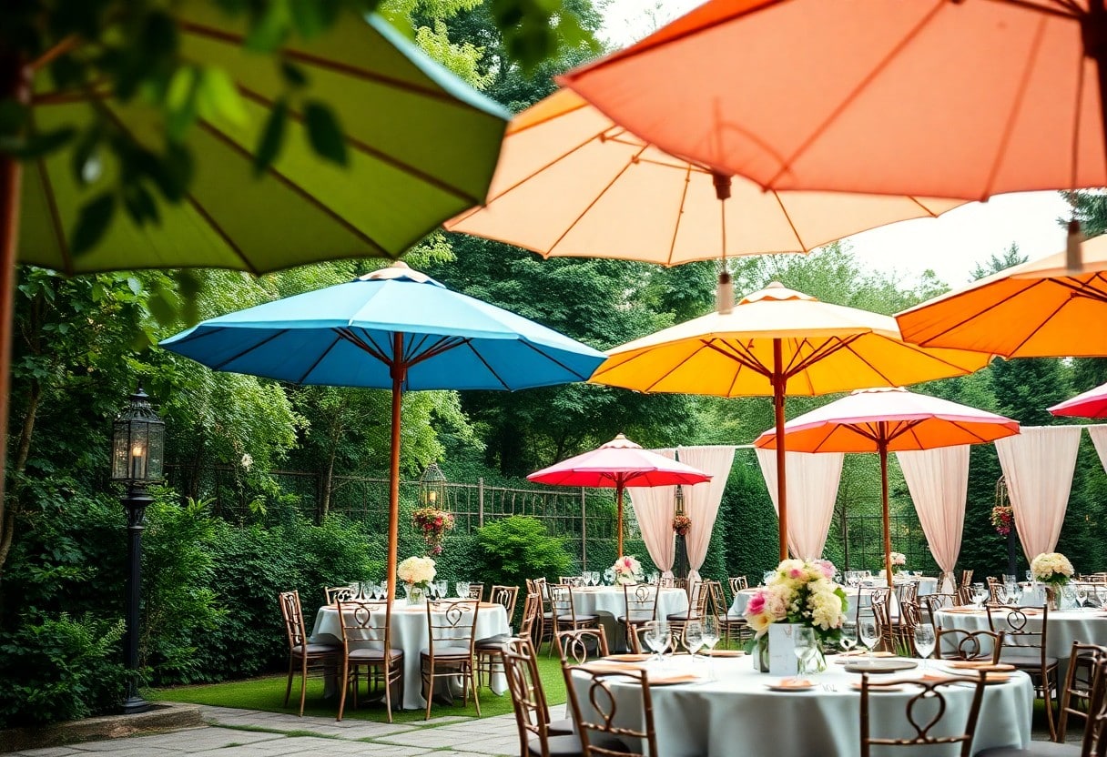 Wenn du ein Open-Air-Event planst, ist einer der entscheidendsten Faktoren der Schutz vor der Sonne. Sonnenschirme bieten nicht nur Schatten, sondern setzen auch ein Zeichen für Stil und Eleganz. Stell dir vor, deine Gäste sind unter einem wunderschön gestalteten Sonnenschirm versammelt, während sie die frische Luft und die Atmosphäre genießen – das hebt die gesamte Erfahrung! Du solltest bedenken, dass ein durchdachtes Schattenkonzept nicht nur das Ambiente verbessert, sondern auch zum Wohlbefinden deiner Gäste beiträgt.