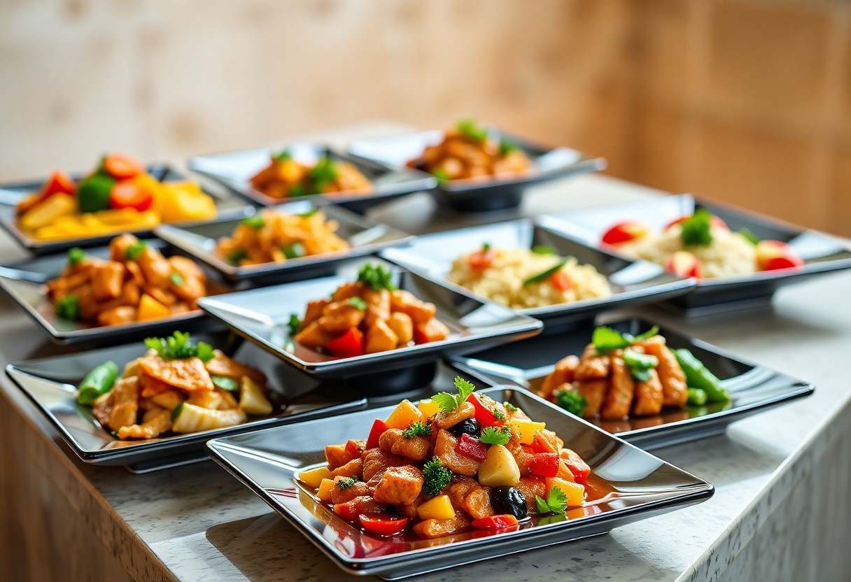 Experimentieren Sie mit verschiedenen Anordnungstechniken, um eine beeindruckende Präsentation zu erzielen. Nutzen Sie die Ecken und Kanten der quadratischen Teller, um unterschiedliche Farben und Texturen zu kombinieren. Das Erstellen von Layern kann dazu beitragen, das Auge des Betrachters zu fangen und die Gäste zu animieren, verschiedene Gerichte auszuprobieren. Eine durchdachte Präsentation kann das gesamte Buffet-Erlebnis erheblich aufwerten.