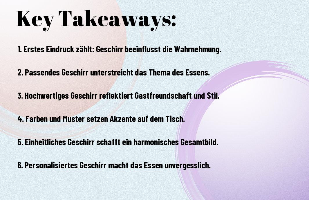 Das richtige Geschirr spielt eine entscheidende Rolle, wenn es darum geht, Ihre Gäste zu beeindrucken. Es trägt nicht nur zur Ästhetik Ihrer Tischdekoration bei, sondern vermittelt auch Ihre Sorgfalt und Gastfreundschaft. Hochwertiges Geschirr reflektiert Ihren Stil und Ihre Wertschätzung für Ihre Gäste, was die gesamte Atmosphäre Ihres Essens aufwertet. Indem Sie auf die richtige Auswahl achten, schaffen Sie ein einladendes Ambiente, das Ihre Gäste sicherlich schätzen werden. Denken Sie daran, dass der erste Eindruck oft der entscheidende ist, und Ihr Geschirr kann dabei den entscheidenden Unterschied ausmachen.