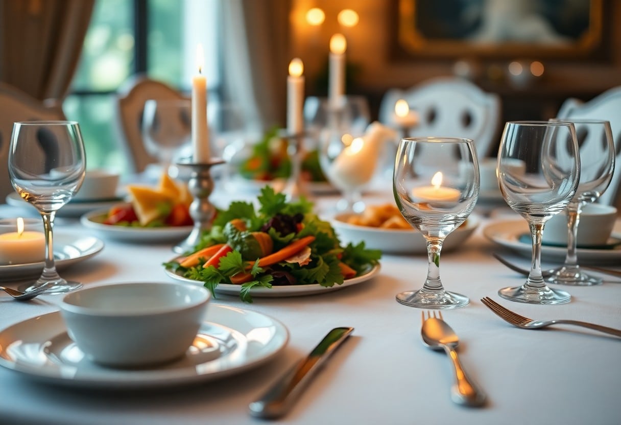 Ein durchdachtes Tisch-Setting umfasst das richtige Geschirr und Besteck für die geplanten Gänge, einschliesslich Vorspeisen- und Desserttellern. Neben den grundlegenden Utensilien sollten Sie auch auf die Anordnung der Gläser – Wasser, Wein und Champagner – achten. Diese Essentials helfen nicht nur, ein elegantes Gesamtbild zu erzeugen, sondern sorgen auch dafür, dass Ihre Gäste das Ess-Erlebnis in vollen Zügen geniessen können.