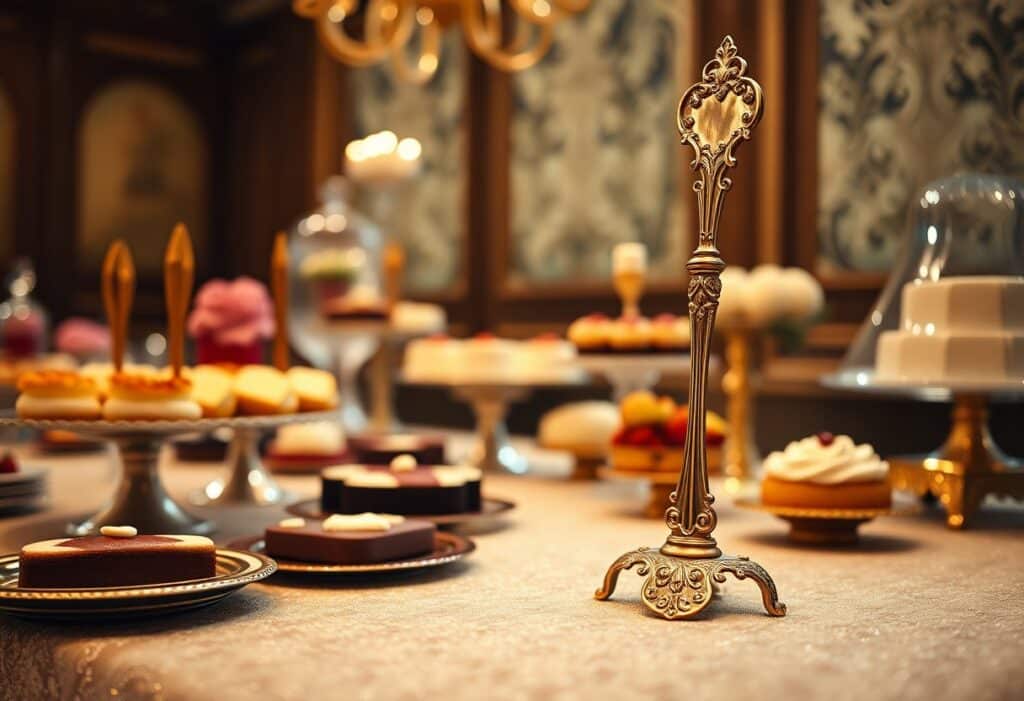 Hinter Ihrer Wahl der Dessertzubehör steht die Absicht, Ihre Gäste zu beeindrucken. Sie wählen goldene Tortenheber, um ein luxuriöses Ambiente zu schaffen.